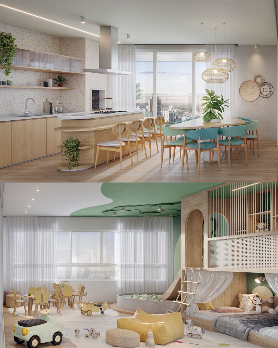 Espaço família com áreas kids e teen integradas